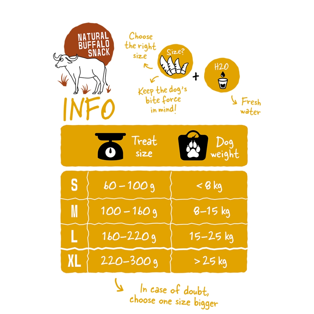 Das duvoplus Büffelhorn ist ein 100 % reiner und natürlicher Kausnack ohne künstliche Zusätze. Dank der harten Struktur ist dieser Kausnack besonders lange haltbar mit dem zusätzlichen Vorteil, dass das Kauen zur Zahnpflege beiträgt. Außerdem ist er extrem schmackhaft und für alle Hunde leicht zu verdauen. Das bedeutet, dass diese Snacks selbst für die empfindlichsten Hunde ideal sind, auch dank der Tatsache, dass sie ein sehr geringes Allergiepotenzial haben. Stundenlanger Kauspaß garantiert! Behalten Sie Ihren Hund beim Kauen immer im Auge.