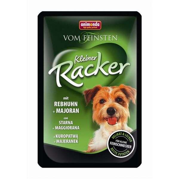 Vom Feinsten Kleiner Racker ist der erste mini pouch, der zielgenau auf die Bedürfnisse kleiner, aktiver Hunde abgestimmt ist.