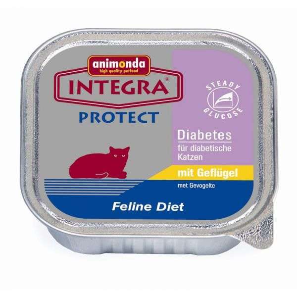 Die Blutzuckerkrankheit, auch als Diabetes mellitus bezeichnet, kommt bei Katzen relativ häufig vor. Er ist eine Stoffwechselerkrankung, bei der es zu einer chronischen Erhöhung des Blutzuckergehaltes kommt. Normalerweise wird der Blutzuckerspiegel durch das Bauchspeicheldrüsenhormon Insulin geregelt. Nach einer Nahrungsaufnahme steigt der Blutzuckergehalt an. Die Bauchspeicheldrüse wird aktiviert und produziert Insulin. Insulin ist das einzige Hormon, das den Blutzuckergehalt senken kann, in dem es den Glukosetransport aus dem Blut in die Zellen fördert. Wenn nun dieser Regelkreis infolge verschiedener Ursachen gestört wird, ist die Hyperglykämie die Folge (Blutzuckergehalt: 200 bis 250 mg/dl). Bei den Katzen ist die häufigste Form des Diabetes mellitus der Typ 2. In diesem Fall produziert die Bauchspeicheldrüse weniger Insulin, gleichzeitig sind die Körperzellen, wie die der Leber und des Muskels, immer weniger für Insulin sensibel. Die Therapie besteht aus zwei Komponenten. Im Vordergrund steht die Insulingabe, die durch eine spezielle proteinreiche und stärkearme Diätnahrung, wie INTEGRA® PROTECT Diabetes, ergänzt wird.
