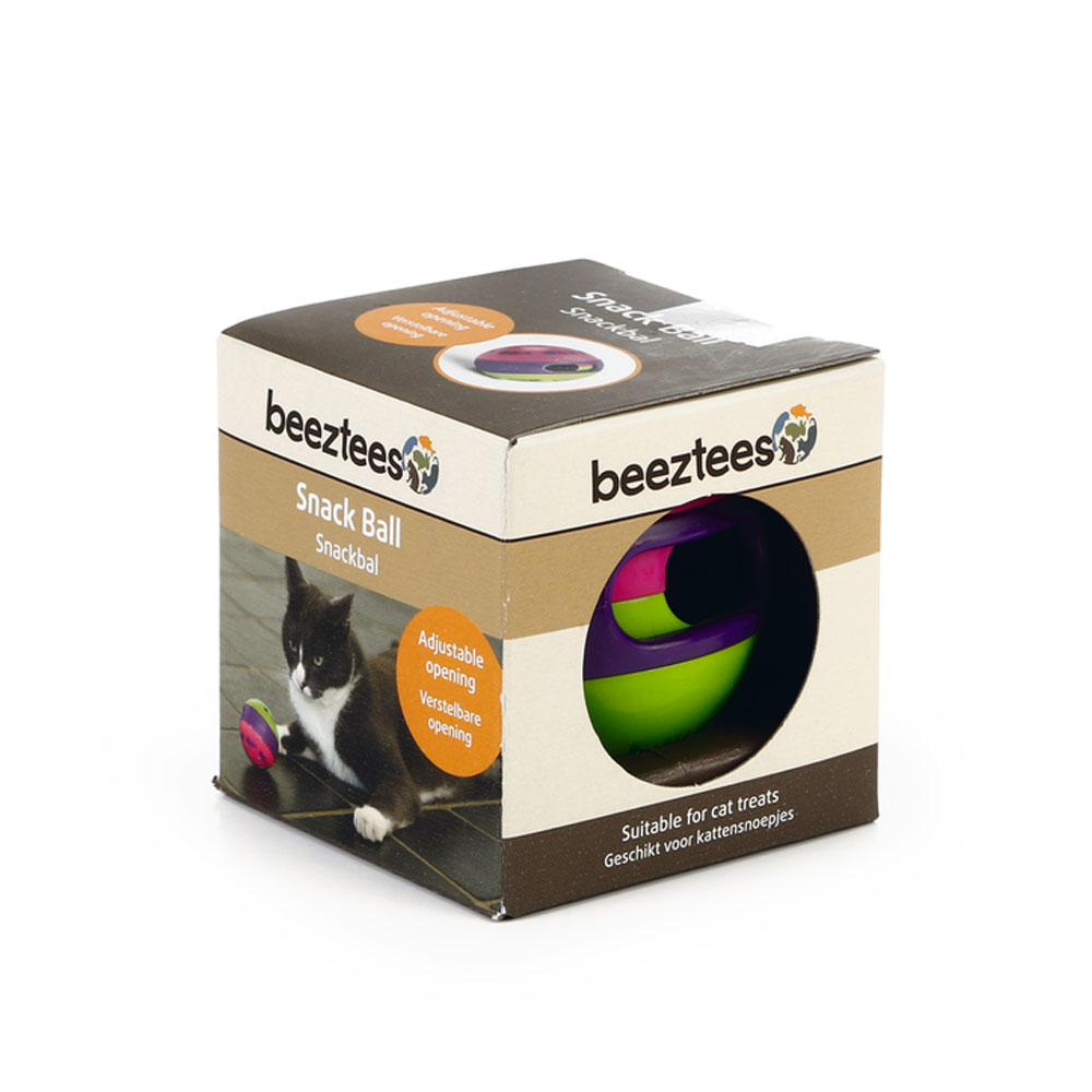 Ein lustiges Katzenspielzeug in Form eines Denkspiels für Ihre Katze, das ist der Snackball Catrino von Beeztees. Der Katzenfutterball stimuliert die Sinne Ihrer Katze. Mit der verstellbaren Öffnung können Sie Ihrer Katze den Zugang zu den Leckerlis leichter oder schwerer machen und fallen die Leckerlis dann aus dem Ball, darf sich Ihre Katze diese natürlich auch schmecken lassen. Mit dem Snackball Catrino von Beeztees kann einfach keine Langeweile aufkommen. - Aus Kunststoff hergestellt - Mit verstellbarer Öffnung