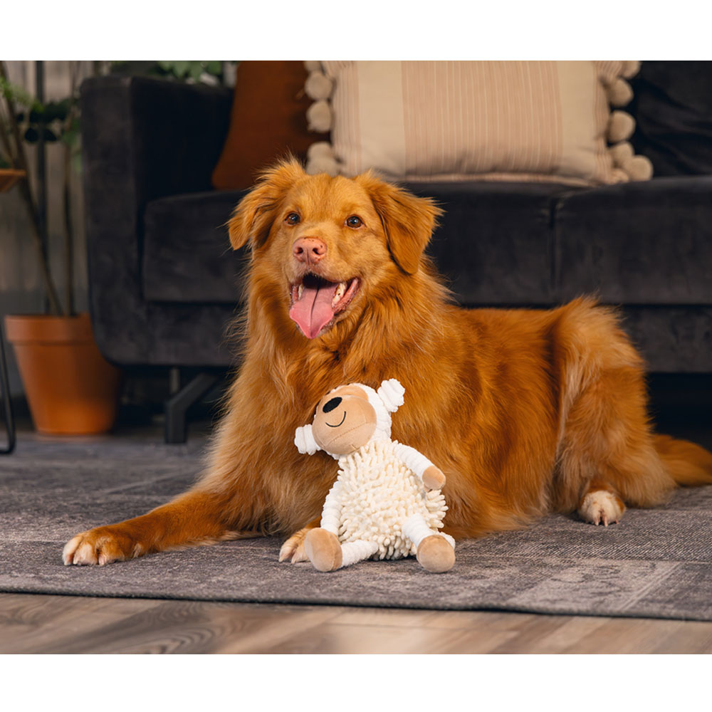 Das Hundespielzeug Affe Jeppe von Beeztees bietet stundenlangen Spiel- und Kuschelspaß für Ihren Hund. Dieses weiche Kuschelspielzeug ist ideal, um es im Hundebett oder Hundekorb zu platzieren, wo sich Ihr Hund gerne daran anschmiegt. Hergestellt aus 100% recyceltem Material, einschließlich der Füllung, ist es eine umweltfreundliche Wahl. Da es keinen Squeaker enthält, eignet es sich perfekt als beruhigender Kuschelgefährte für Ihren Hund!