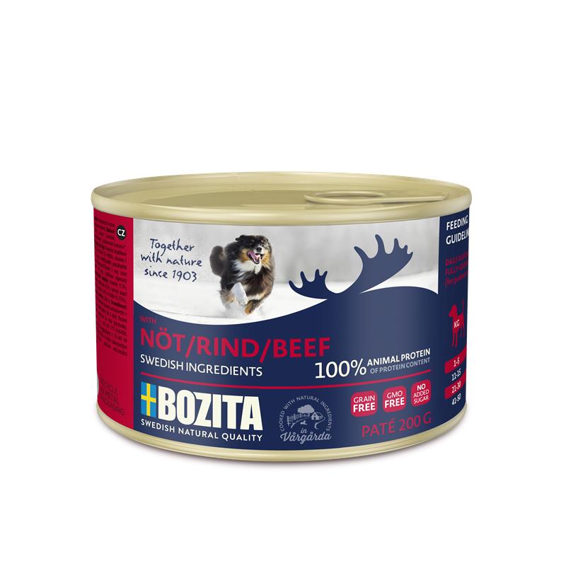 Mit den Bozita Dosen als Pate bekommt der Hund ein gesundes Nassfutter nach traditioneller schwedischer Art.
