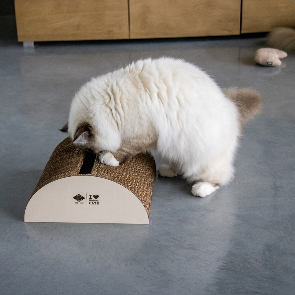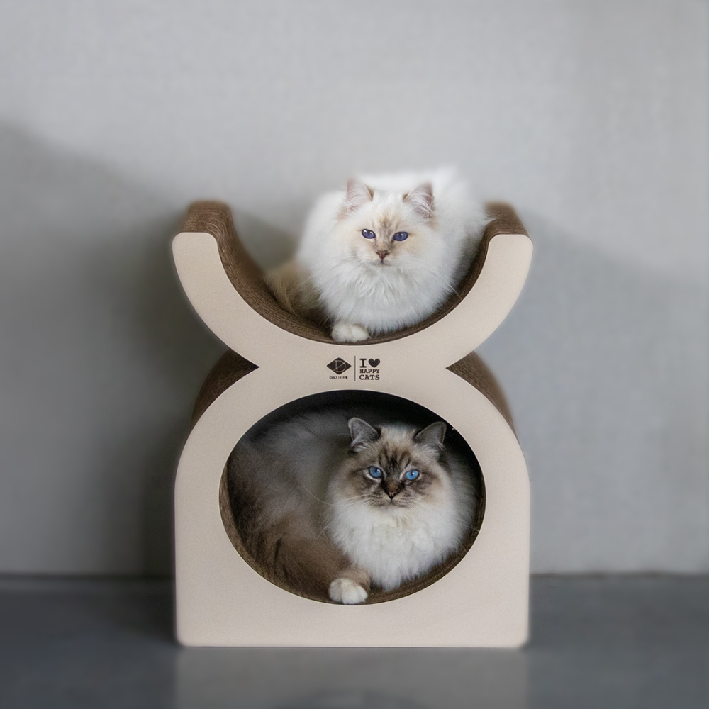 FAYE von D&D Home | I LOVE Happy Cats ist ein zweistöckiges „Playground“ und Liegeplatz aus robuster Wellpappe, das mit Sicherheit von Ihrer Katze gern angenommen wird, weil Katzen Pappe LIEBEN! Die Seiten aus MDF verleihen ihm ein luxuriöses Aussehen und zusätzliche Festigkeit. Die drei Teile können kombiniert oder im Haus verteilt verwendet werden und wurden in Zusammenarbeit mit der Katzenverhaltensforscherin Anneleen Bru entwickelt. Katzen können auf FAYE ein Nickerchen machen, es als Tunnel benutzen, ihre Krallen pflegen oder Pheromone abreiben, um Stress abzubauen! Happy Tipp! Verwenden Sie FAYE als doppelstöckiges „Playground“ und separate Plattform zum Ausruhen, Spielen und Kratzen oder teilen Sie es und platzieren die Teile an verschiedenen Orten.