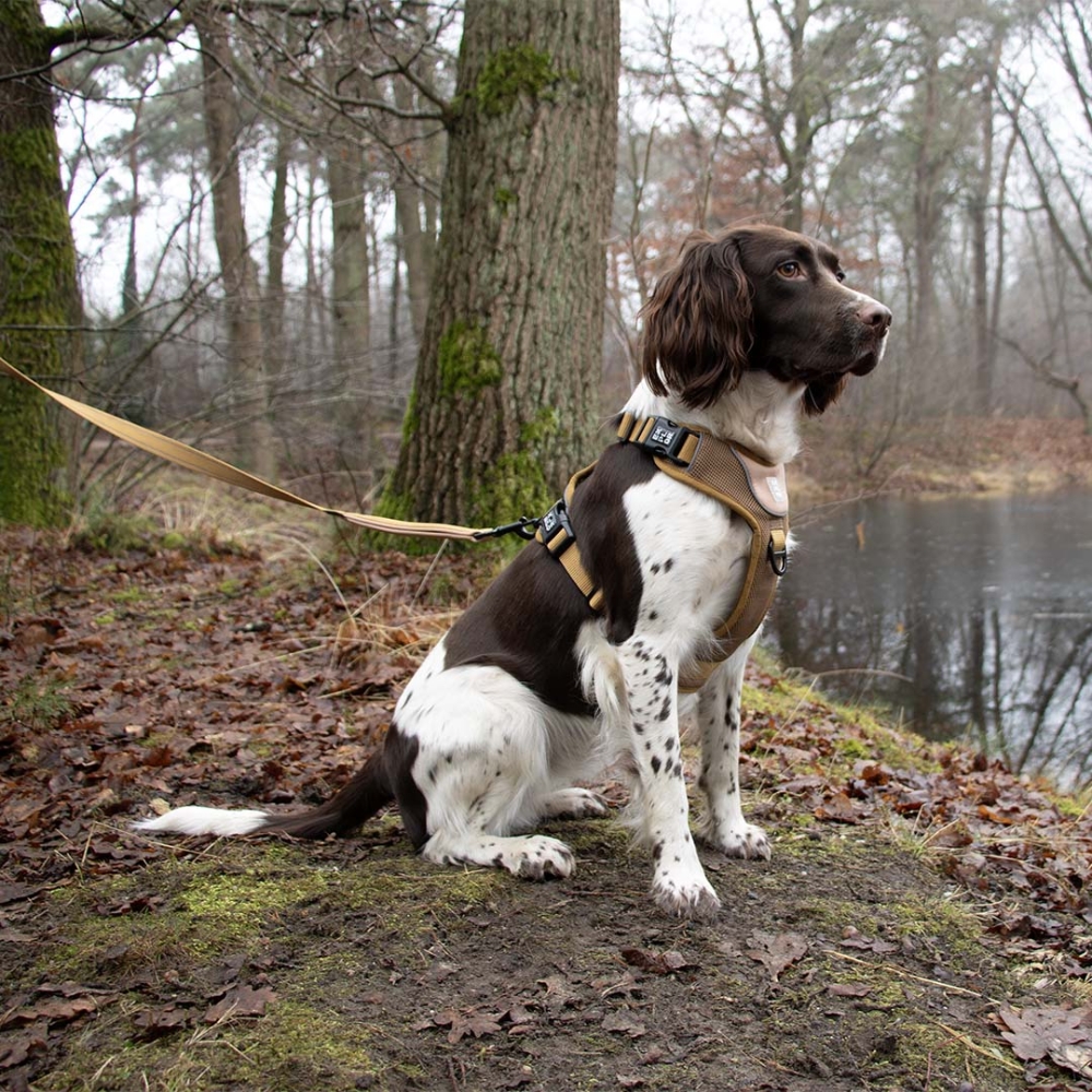 Mit dem EXPLOR Ultimate Fit No-Pull-Geschirr, einem gut durchdachten, ergonomischen Hundegeschirr, das ideal für einen täglichen Stadtspaziergang oder auch ein großes Outdoor-Abenteuer ist, sind Sie unterwegs immer auf Tuchfühlung. Ihr Hund genießt optimale Bewegungsfreiheit, weil der durch Ziehen an der Leine verursachte Druck gleichmäßig über die Brust verteilt wird. So werden lebenswichtige Organe im Nacken geschützt. Das Geschirr verfügt über zwei Befestigungsringe aus Edelstahl: einem auf dem Rücken, der für ruhige oder ältere Hunde geeignet ist, die leicht zu kontrollieren sind und einem verstärkten D-Ring im Brustbereich, um Hunde, die an der Leine ziehen, zu kontrollieren. Das EXPLOR Ultimate Fit No-Pull-Geschirr ist um den Nacken und die Brust herum verstellbar, wodurch es, in Kombinatin mit den stapazierfähigen Materialien, für fast alle Hunde geeignet ist. Die Schnallen sind um die Mitte herum angebracht, so dass der Hund kein(e) Bein(e) anheben muss, wenn das Geschirr angelegt wird. Um das Fell und die Haut des Hundes vor Wundscheuern zu schützen, sind die meisten der Riemen und Schnallen mit weichen, atmungsaktiven Materialien überzogen. Außerdem trocknen die leichten, aber hochwertigen Stoffe, die sowohl für die Innenseite als auch für die Außenseite verwendet werden, schnell, was sehr praktisch ist, wenn Ihr Hund gerne schwimmen geht. Um zu verhindern, dass sich Ihr Hund beim freien Laufen an Ästen verfängt, hat das Geschirr keine Schlaufen oder abstehenden Teile. Das EXPLOR Ultimate Fit berücksichtigt auch die Sicherheit Ihres Hundes im Straßenverkehr. Die reflektierenden Paspeln sind an den richtigen Stellen angebracht und sorgen für optimale Sichtbarkeit im Straßenverkehr. Außerdem gibt es im Brustbereich des Geschirrs eine spezielle Innentasche für einen ID-Anhänger, so dass der Anhänger  leicht zugänglich und unbeschädigt bleibt. Rausgehen und ERKUNDEN!