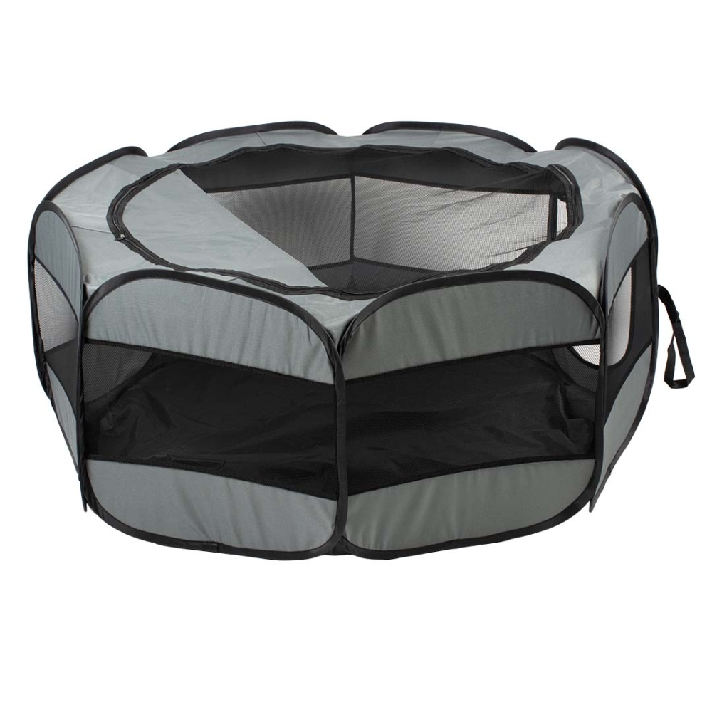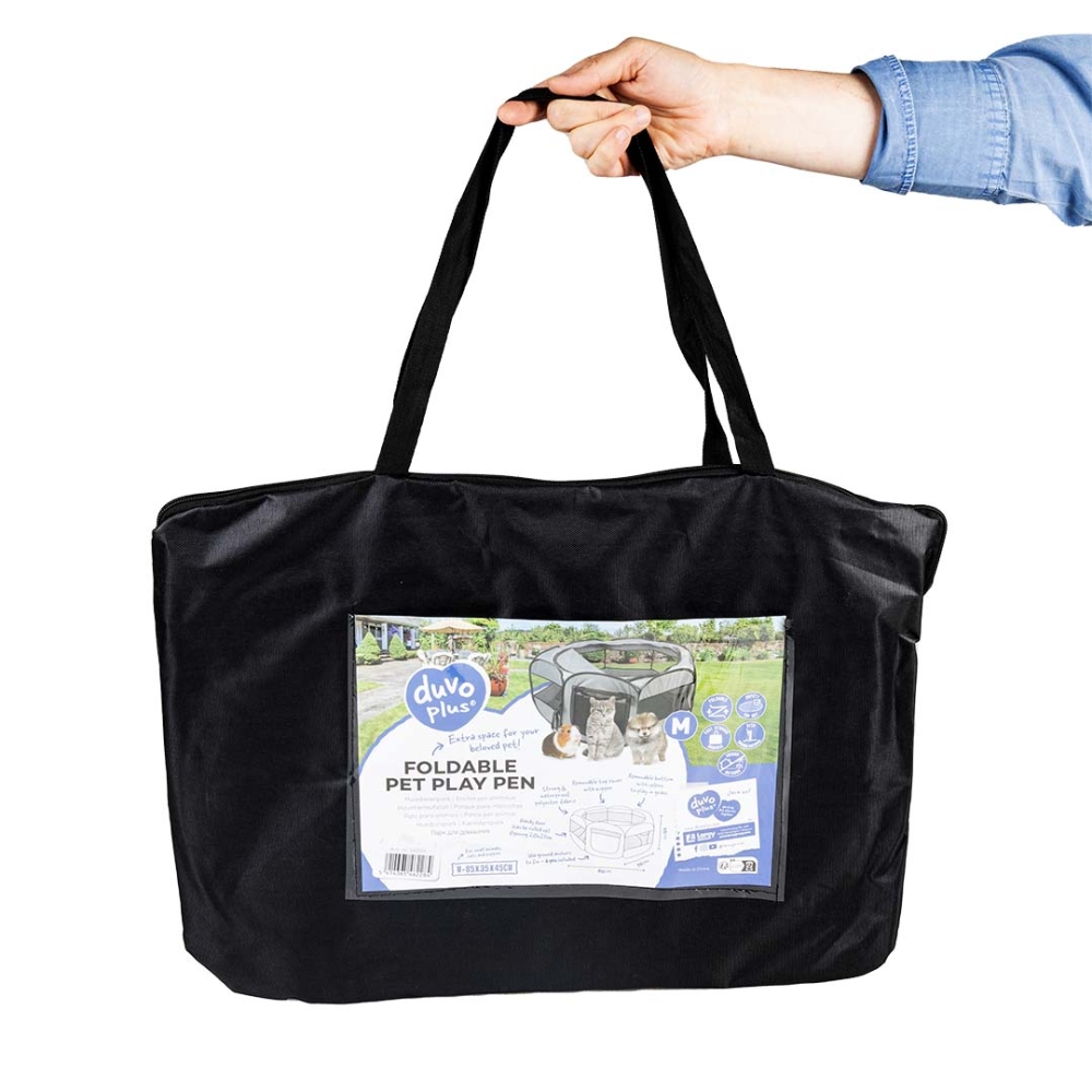 Dieser praktische und leichte Pop-up-Spielplatz von duvoplus ist der ideale zusätzliche Spielbereich für Haustiere. Er lässt sich im Handumdrehen aufstellen und ganz einfach zusammenfalten und in der mitgelieferten Tragetasche überallhin mithinnehmen. Dank des oberen Netzes können Haustiere nicht von oben entkommen. Die Bodenplane ist mit Klettverschluss befestigt und kann schnell entfernt werden, wenn Ihre Tiere lieber auf dem Gras spielen möchten. Das Gehege besteht aus wasserabweisendem Material, das besonders langlebig ist und sich sowohl für den Innen- als auch den Außenbereich eignet. Mit einer aufrollbaren Tür für einen einfachen Zugang. Ideal für Reisen, im Garten oder am Meer.