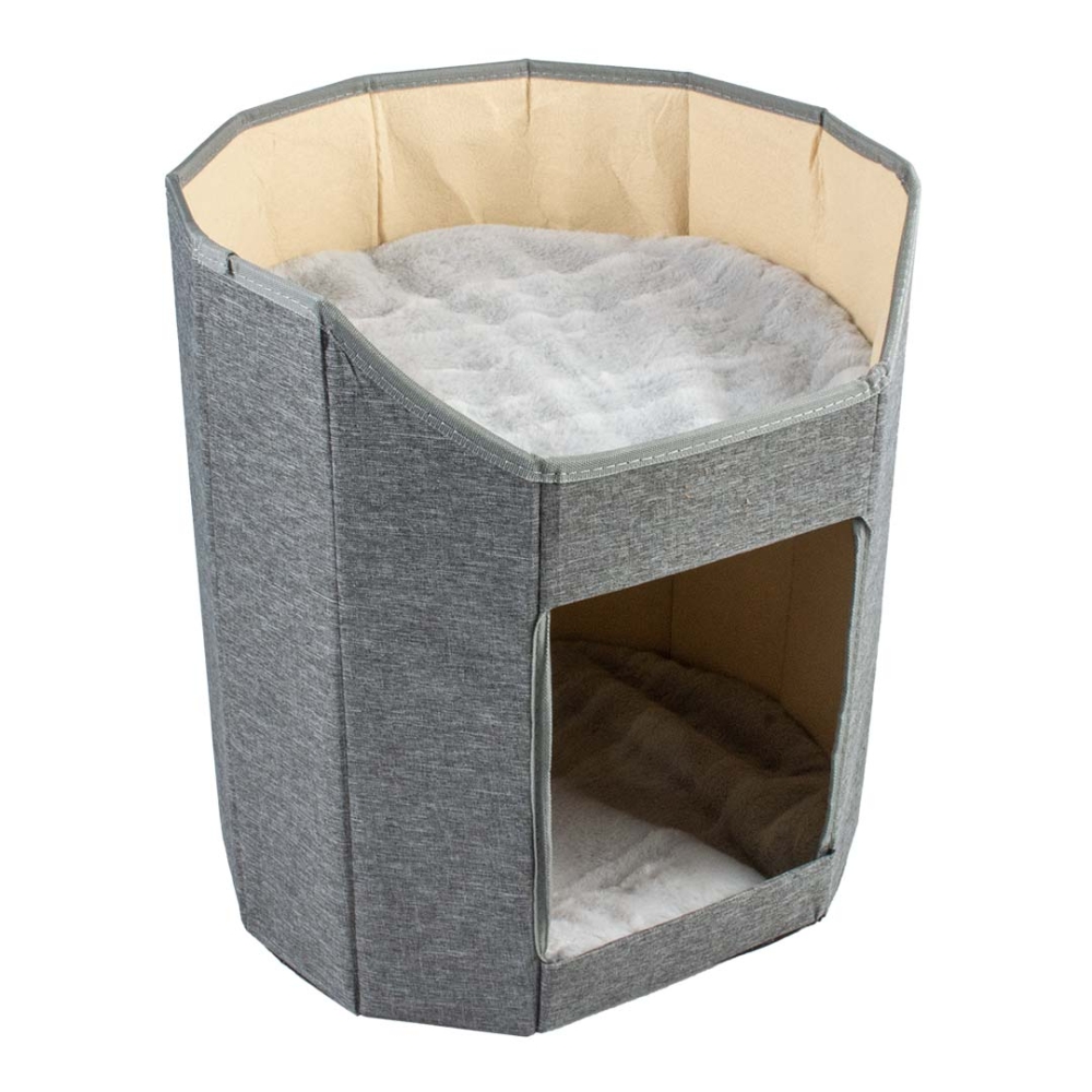 Das duvoplus faltbare Katzenhaus ist der perfekte Rückzugsort für Katzen, die Gemütlichkeit und Komfort lieben. Dieses kompakte Haus bietet gleich zwei kuschelige Schlafplätze, jeweils mit einem weichen Kissen für zusätzlichen Liegekomfort. Dank des faltbaren Designs lässt sich das Haus leicht transportieren, flach zusammenpacken und bequem verstauen.