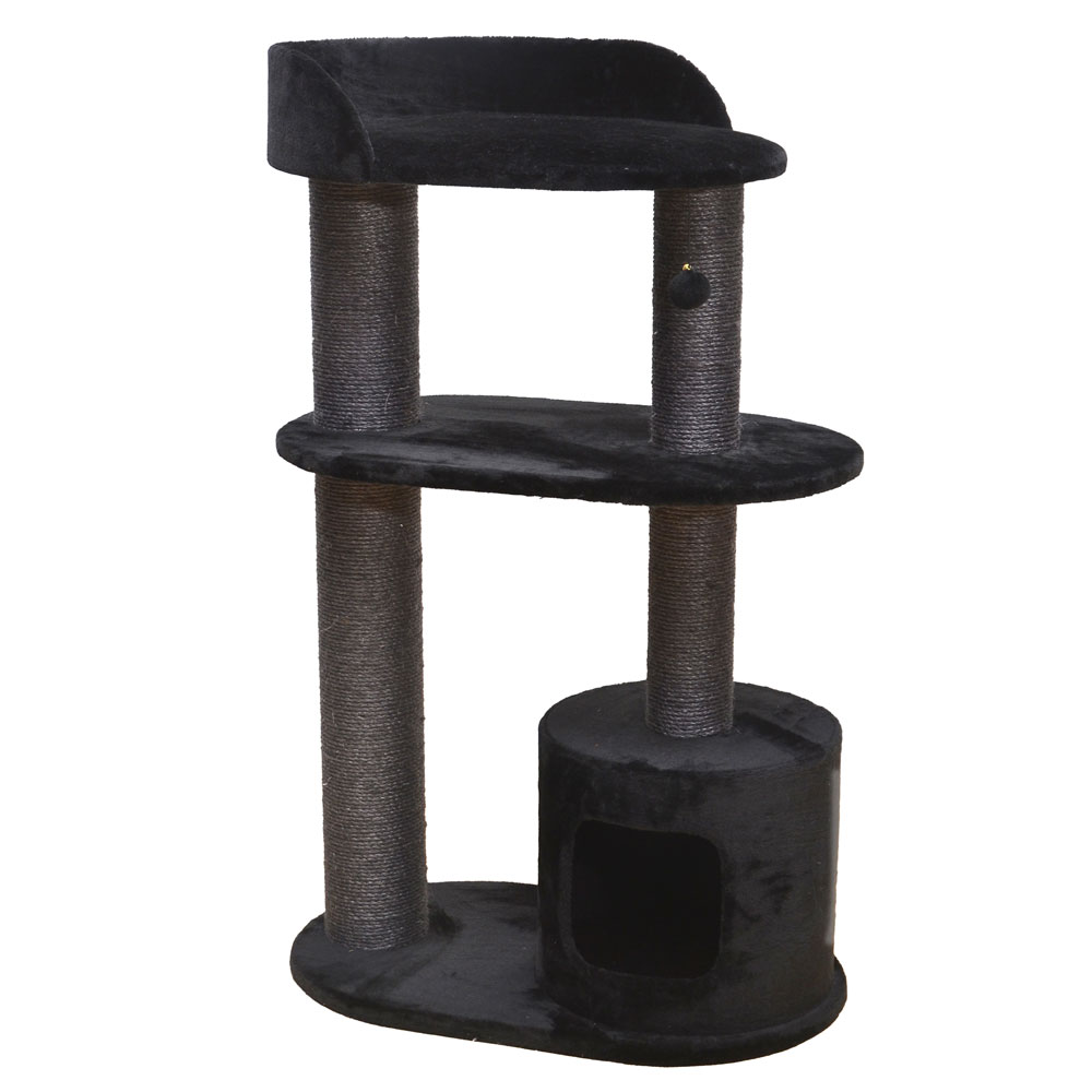 Der Kratzbaum Bedford von EBI bietet alles, was sich eine Katze wünscht: einen Kratzbaum aus weichem Plüsch mit einer Hütte im unteren Bereich und 2 Etagen. Die 4 Kratzpfähle sind aus festem Sisal, damit die Katze nach Herzenslust kratzen kann.