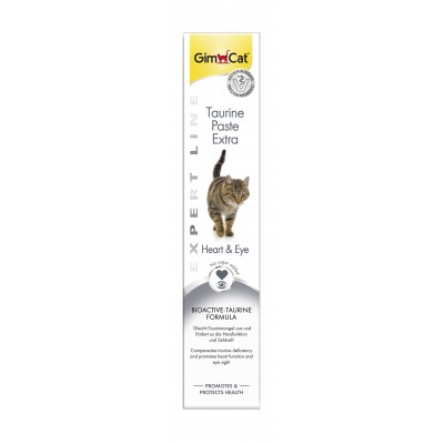 Taurin ist für Katzen ein essentieller Nährstoff zur Sicherstellung der Herzfunktion und Sehkraft. Da Katzen Taurin nicht ausreichend produzieren können, muss es über die Nahrung aufgenommen werden. Die GimCat Taurine Paste Extra mit der innovativen „Bioactive-Taurine-Formula“ gleicht Taurinmangel effektiv aus. Die perfekte Kombination aus Taurin und Muschelpulver fördert die Leistungsfähigkeit von Herz und Auge. Der enthaltene Vitamin B-Komplex und Calcium unterstützen zusätzlich die Nerven- und Herzfunktion sowie den Energiestoffwechsel.