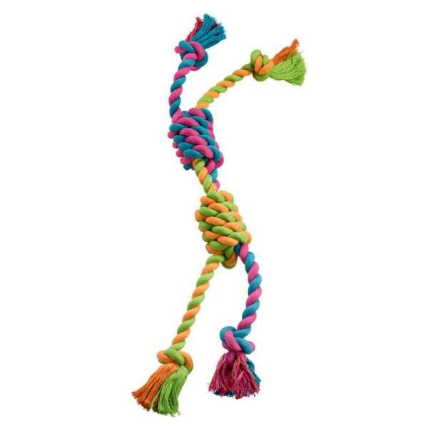 Das Hundespielzeug Rope Double Monkey ist hervorragend geeignet für Wurf- und Zerrspiele. Dabei pflegt es zusätzlich die Zähne und bietet daher alles, was das Hundeherz begehrt.