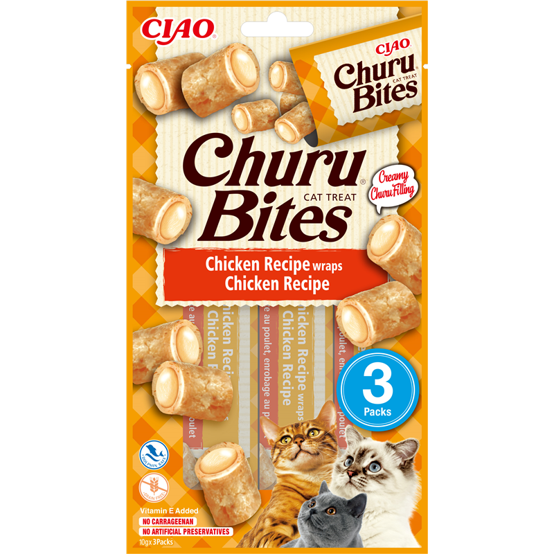 Zur abwechslungsreichen Ernährung einer Katze gehört die richtige Belohnung. Mit Churu® Bites Snacks können Sie Ihre Katze jederzeit zwischendurch verwöhnen. Ein Beutel enthält 3 einzelne Portionspackungen. Servieren Sie die saftigen Leckerlis einzeln als Nascherei. Mit Vitamin E angereichert, welches eine Antioxidative Funktion hat. Churu® Bites- schmackhaft, gesund und funktional.