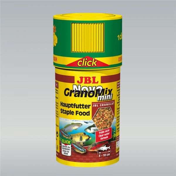 JBL Novo GranoMix mini ist ein durch Kurzzeithocherhitzung schonend hergestelltes Granulat mit hohem Naehrstoffgehalt. Ein Teil des Granulats sinkt langsam ab und ein Teil treibt einige Zeit an der Wasseroberflaeche. So koennen die Fische aller Wasserzonen artgerecht ernaehrt werden. Die ausgewogene Zusammensetzung aus allen wichtigen Bestandteilen wie Proteinen, Fett und Kohlenhydraten, sowie lebenswichtigen Mineralien und Vitaminen sorgt fuer gesundes Wachstum und gesteigerte Widerstandskraft gegen Krankheiten. Durch die maulgerechte Form des Granulats erreicht Novo GranoMix eine hohe Akzeptanz bei den Fischen.