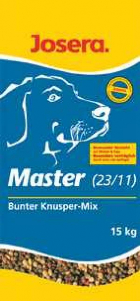 Josera Master vereint kernige Maisflakes mit knackigen Fleischbrocken in einem leckeren Knusper-Mix-Hundefutter.