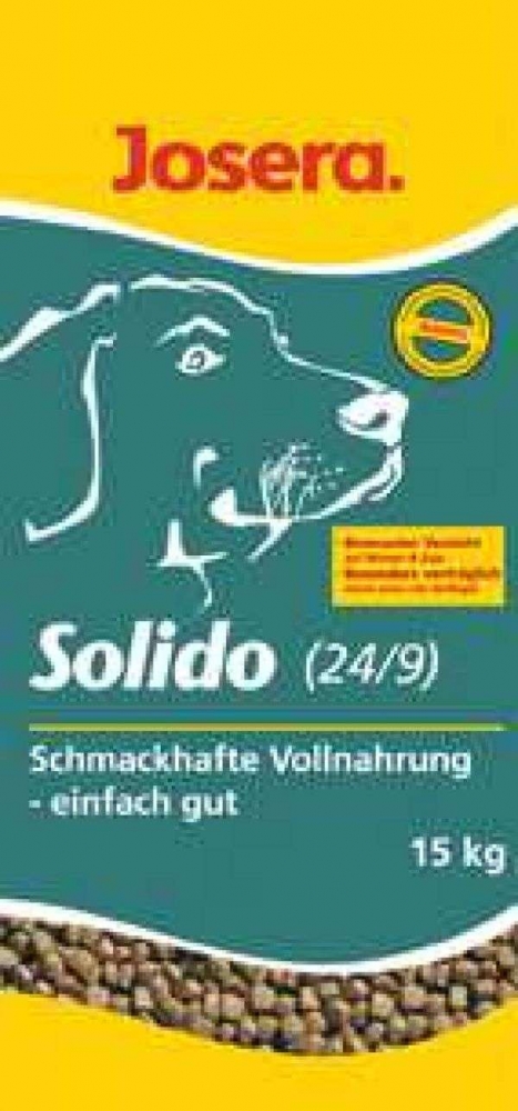 Josera Solido ist ein kompaktes und leichtes Alleinfutter mit Fleisch und dem Besten aus Vollkorn für wenig aktive, ausgewachsene Hunde aller Rassen.