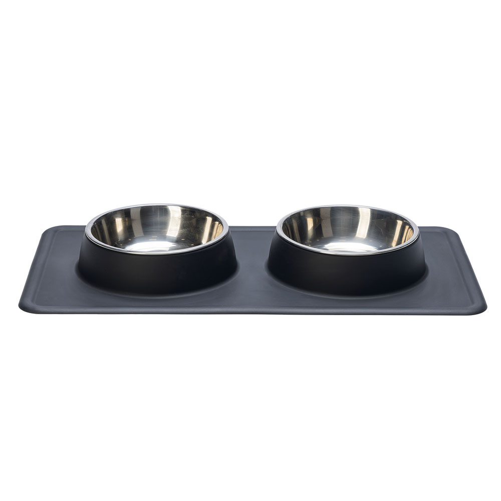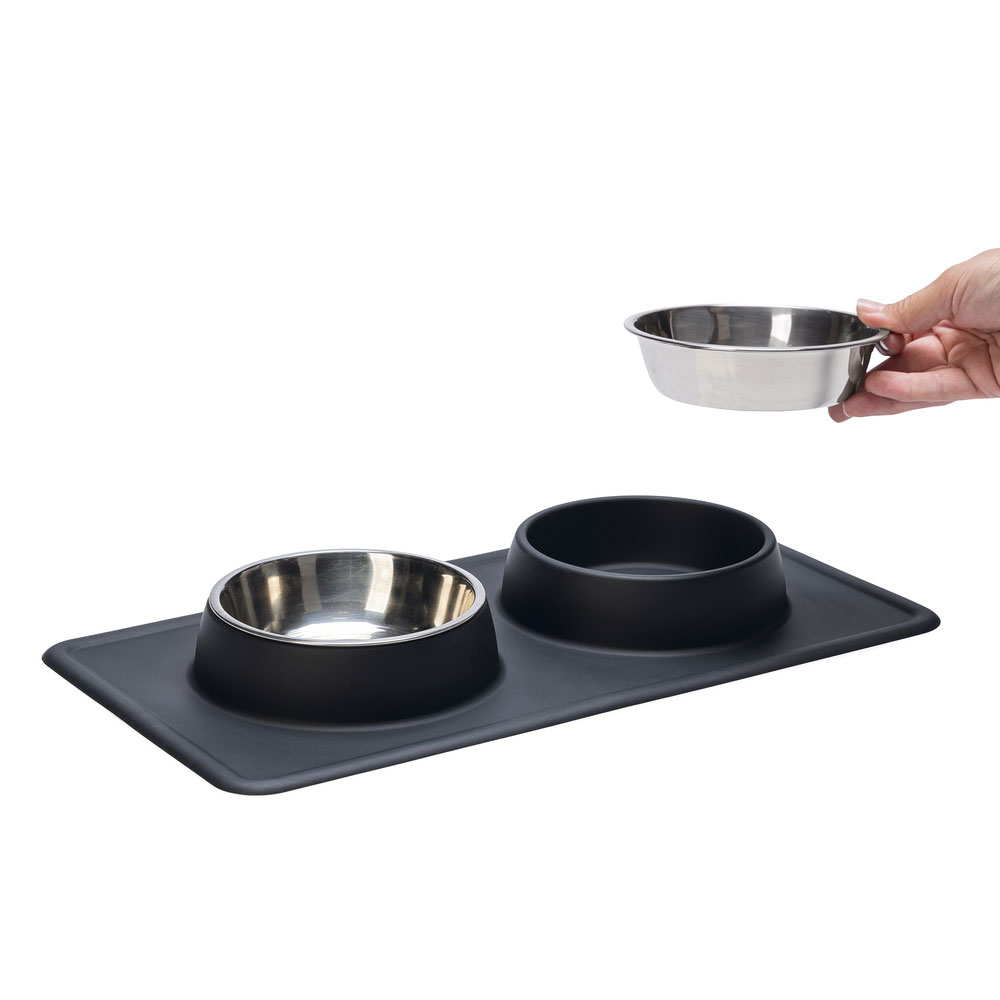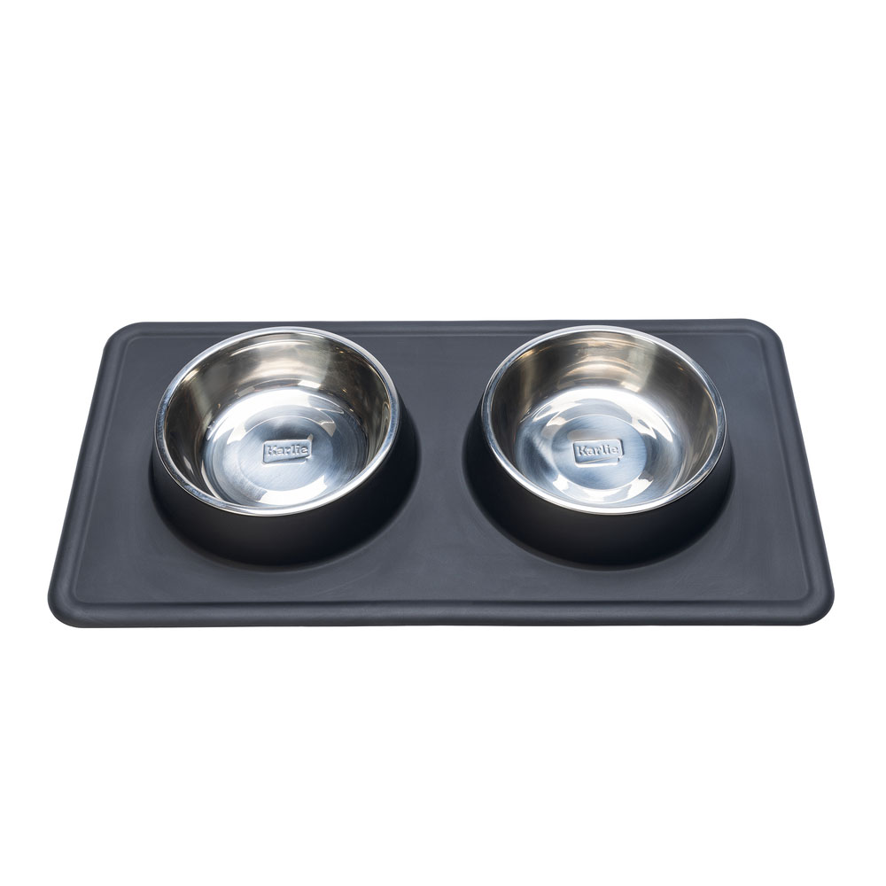 Mit dem Diner Set Dex von Karlie können Sie Ihren Hund mit Futter und Wasser versorgen. Dieses Set hat 2 herausnehmbare Edelstahlschüsseln. Diese Edelstahlschüsseln können in der Spülmaschine gereinigt werden. Edelstahl sorgt dafür, dass der Geruch von Hundefutter nicht aufgenommen wird. Der Rand von Dex ist aus rutschfestem Silikon, damit die Schale an Ort und Stelle bleibt. Außerdem sammelt die Silikonschale verschüttetes Wasser und/oder Futter auf.