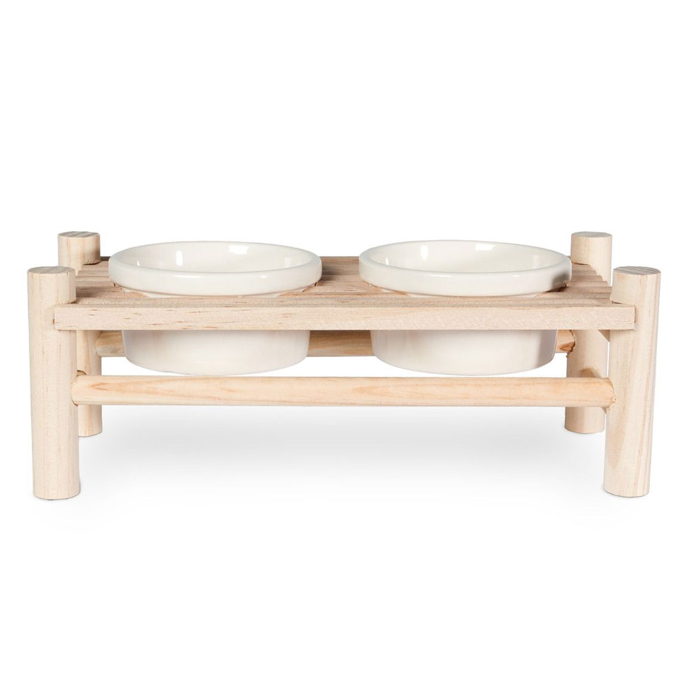 - Aus Holz mit 2 Keramiknäpfen