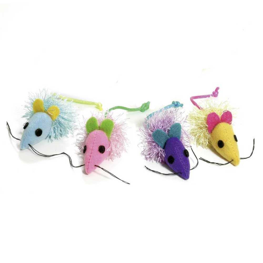 Karlie Flamingo bunte Mäuse mit Fransen - 4 Stück