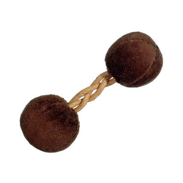 Die niedliche Hantel aus Sisal und 2 braunen Bällen lässt sich ideal durch die Gegend tragen und jagen und bringt jede Menge Spielspaß mit.