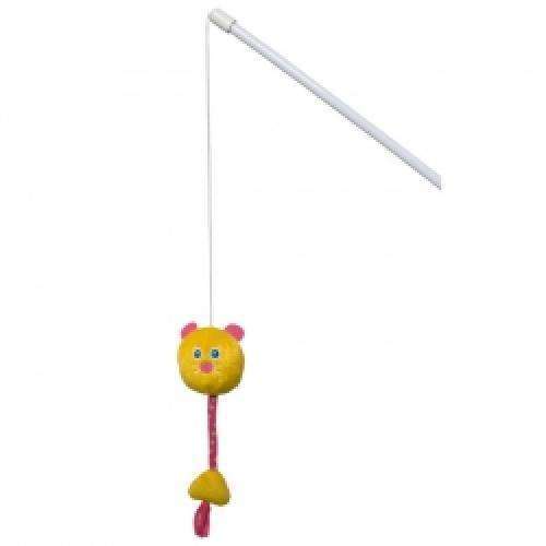 Diese Angel besitzt einen Stab von ca. 50 cm Länge und ist mit einem Dotti in Form eines Katzenkopfes aus Plüsch und Stoff bestückt, der an einem Gummiband befestigt ist und bei Berührung rasselt. Ein toller Spielspaß für Katzen jeden Alters!