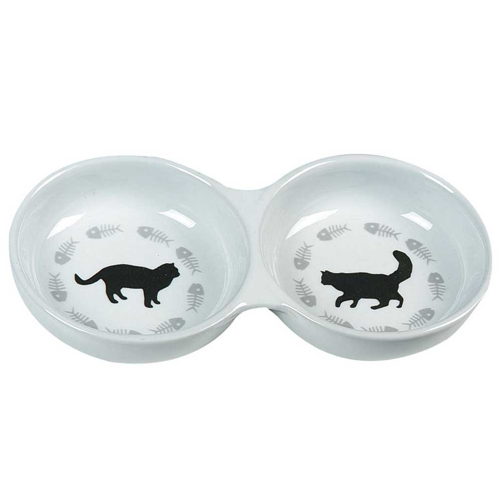 Schöner Doppelnapf aus Keramik für Katzen.