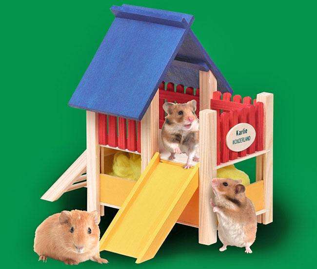 Karlie Wonderland Nager-Spielplatz mit Rutsche für Hamster und Mäuse. Aus Echtholz mit ungiftiger Farbe. Komplett mit Hamsterwatte.