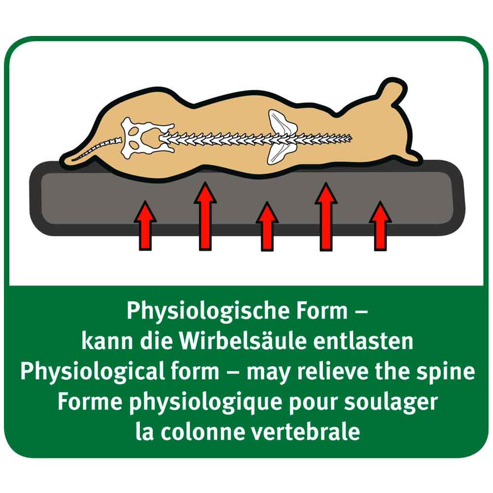 Memory Foam passt sich der Beschaffenheit des Körpers sowie der Körpertemperatur an und sorgt für eine optimale Druckentlastung und höchsten Liegekomfort. Wohltuend und entlastend für Wirbelsäule und Gelenke. Memory Foam kommt immer wieder in die ursprüngliche Form zurück. Für anspruchsvolle Hunde, große Hunde, schwere Hunde sowie Senioren, Hunde in der Rekonvaleszenz (z. B. bei Gelenk und Muskelproblemen), Sporttiere oder bei genetisch bedingten Problemen. Ideal auch für Katzen.