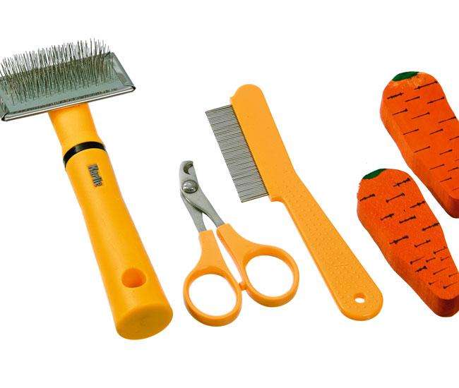 5-teiliges Pflegeset für Kleintiere aus der Karlie Perfect Care Pflegeserie. Für langes und kurzes Fell. Das Pflegeset besteht aus einer Softzupfbürste, einer Krallenschere, einem Staub- und Flohkamm und 2 Knabberhölzern in KaRottenform.