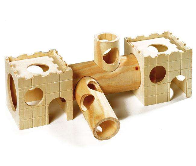 Tolles Tunnelsystem für Hamster in Form einer Ritterburg. Aus Echtholz.