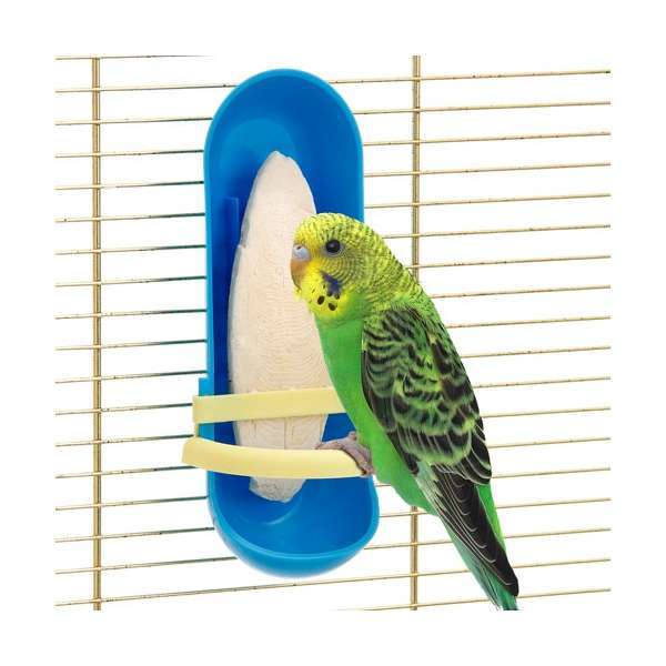 Stabile Kunststoffhalterung für Sepiaschalen. Mit Sitzstange. Die Halterung kann problemlos mit einer Sepiaschale bestückt werden und verhindert ein Herausfallen von Bruchstückchen außerhalb des Käfigs. Eine komfortable und einfache Befestigung an allen Vogelheimen mit vertikalen und horizontalen Gitterstäben ist mit Hilfe einer Universalbefestigung möglich. Die Sepiaschalen-Halterung lässt sich einfach und hygienisch reinigen.