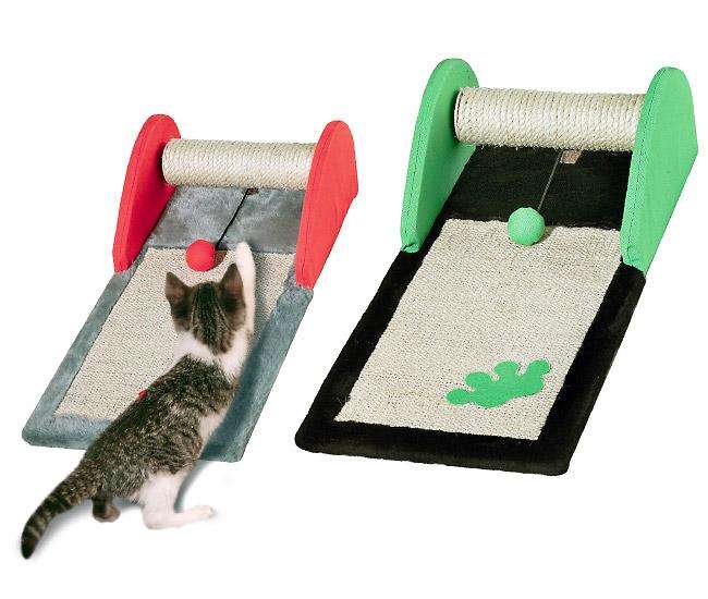 Das Kratzbrett fällt durch seine moderne Farbgebung mit Schwarzem oder Grauem Plüsch und Grünen bzw. Orangen Stoffelementen auf. Er ist außerdem mit einem CATNIP-Spielzeug ausgestattet, das Ihren Liebling zum Spielen animiert.