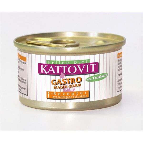 Kattovit Feline - GASTRO - enthält ausschließlich Ente, Fasan bzw. Kaninchen als Proteinquellen und Reis, keine weiteren Fleisch- u. Getreidesorten.