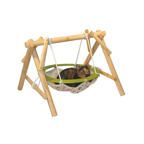 Dank ihrer stabilen und standfesten Form eignet sich die Schaukel auch für größere und schwerere Katzen. Sollte Ihre Katze nicht schaukelfreudig sein, so lässt sich die Liegemulde ganz einfach fixieren. Das Set besteht aus einer bequemen Liegemulde und einem stabilen Ständer aus Holz. Die Montage ist einfach und unkompliziert.