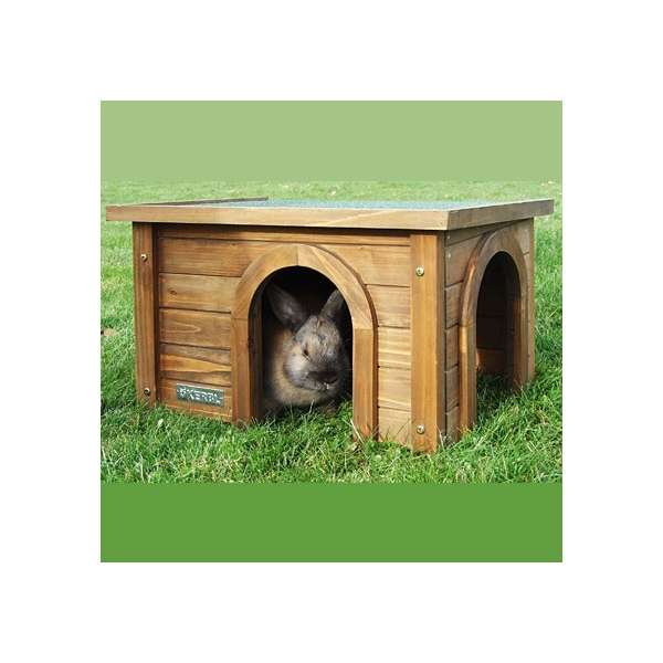 Dieses Nagerhaus des Herstellers Kerbl besteht aus lasierter Spießtanne und besitzt ein Bitumendach. Das Haus ist wetterfest und somit ideal für die Verwendung im Freigehege geeignet.
