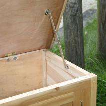 Das Nagerhaus Alfred ist ausgestattet mit 2 Türen, die getrennt voneinander zu öffnen sind, und mit einer verzinkten, ausziehbaren Wanne zur leichteren Reinigung. Die Front ist mit hochwertigem Gitter bestückt. Das aufklappbare Bitumendach mit Dachfixierung schützt vor Regen und Wettereinflüssen. Durch einen Durchschlupf gelangt der Nager in den integrierten Ruheraum. Inklusive Kunststofffüße.