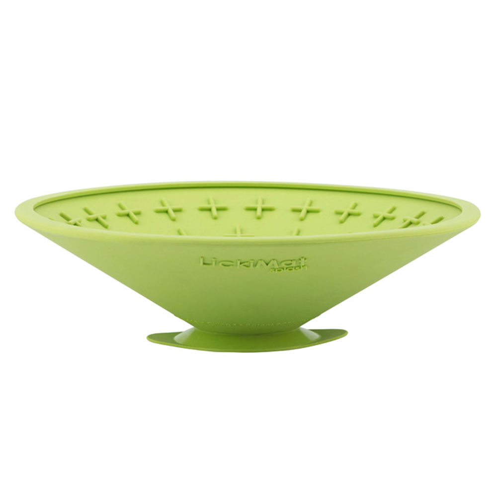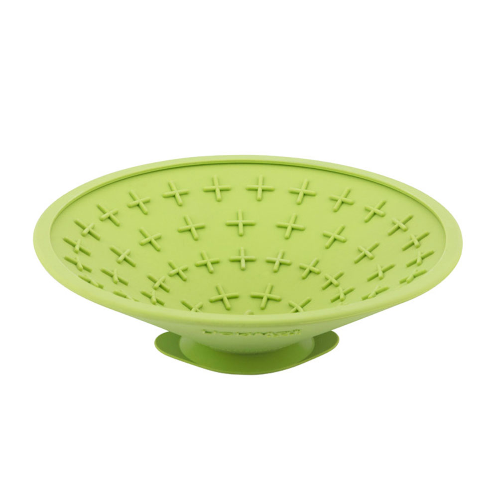 Alle Leckereien, die eine cremige, weiche Konsistenz haben, eignen sich perfekt für die LickiMat. Schmieren Sie einfach eine Paste (z.B. Erdnussbutter, ein feines Feuchtfutter, eine Paste aus Leckerlis o.ä.) auf die LickiMat, so dass diese sich schön in den Zwischenräumen verteilt. Bei der Auswahl der Leckerei sind Ihnen keine Grenzen gesetzt. Legen Sie nun die befüllte Licki Mat auf den Boden und Ihr Hund oder Ihre Katze wird stundenlang mit Freude damit beschäftigt sein, die ganze Matte sauber zu lecken, was selbstverständlich nicht nur die Langeweile vertreibt, sondern ebenso die Geschicklichkeit und die Intelligenz fördert. Mit Hilfe des Saugnapfes an der Unterseite kann die neue LickiMat Splash auf glatten Oberflächen befestigt werden.