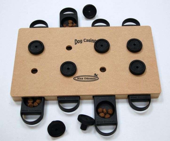 Das Hundespielzeug Dog Casino aus Schweden, besteht aus Holz (MDF) und Kunststoffelementen.