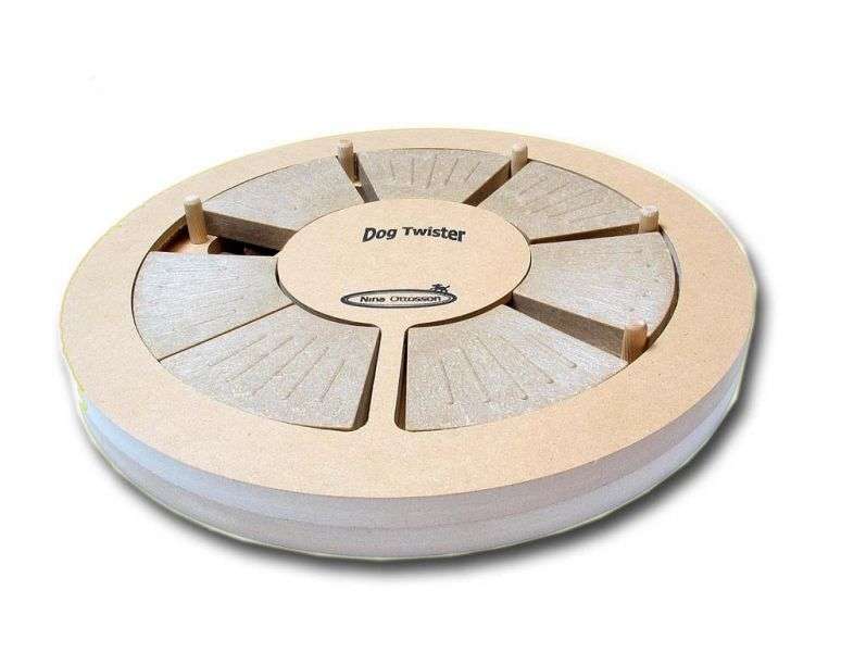 Nina Ottosson Dog Twister Holz intelligentes Hundespiel Der Hund verschiebt die Scheiben in verschiedene Richtungen, um an das Leckerlie zu kommen. Um es etwas schwerer zu machen, setzt man die kleinen Stege ein, die Ihr Hund erst herausheben muss. Erst dann kann er die Scheiben weiter verschieben und kommt an das Leckerlie.