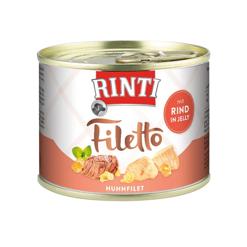 Für Rinti Filetto wird ausschließlich mageres Huhnfilet, ausgewählte Innereien und Rind in gewachsenen, natürlichen Stücken verwendet. Eine pure Fleischmahlzeit in delikater Jelly. Eiweißreich, mit wenig Fett. Alleinfuttermittel für Hunde.