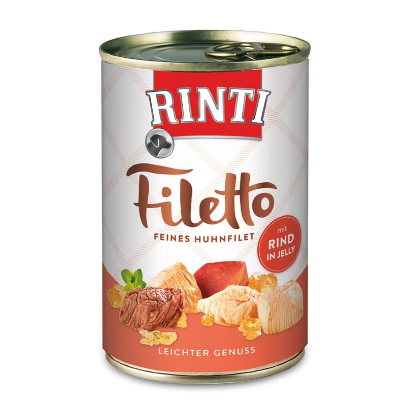 Für Rinti Filetto wird ausschließlich mageres Huhnfilet, ausgewählte Innereien und Rind in gewachsenen, natürlichen Stücken verwendet. Eine pure Fleischmahlzeit in delikater Jelly. Eiweißreich, mit wenig Fett. Alleinfuttermittel für Hunde.