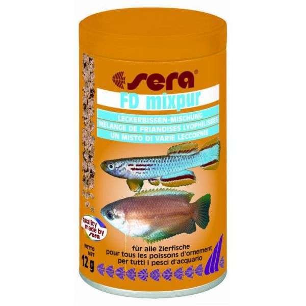 Das Müsli für alle Fische - eine ausgewogene Mischung aus gefriervakuumgetrockneten roten Mückenlarven, Tubifex, Artemia-Shrimps und Daphnien.