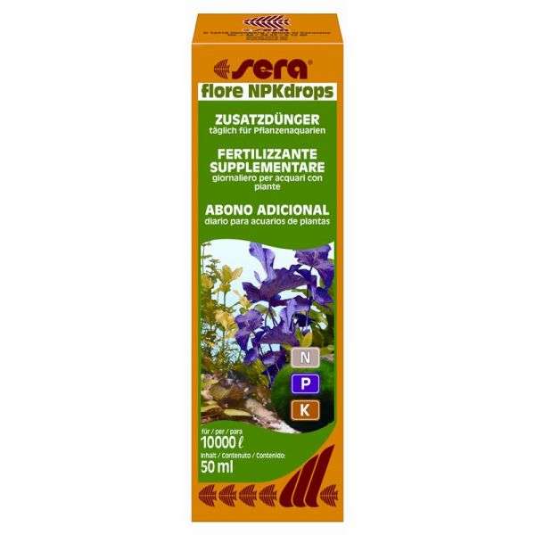 sera flore NPKdrops ist ein Zusatzdünger für Pflanzenaquarien (Hollandbecken) und Aqua rien mit geringem Fischbesatz.