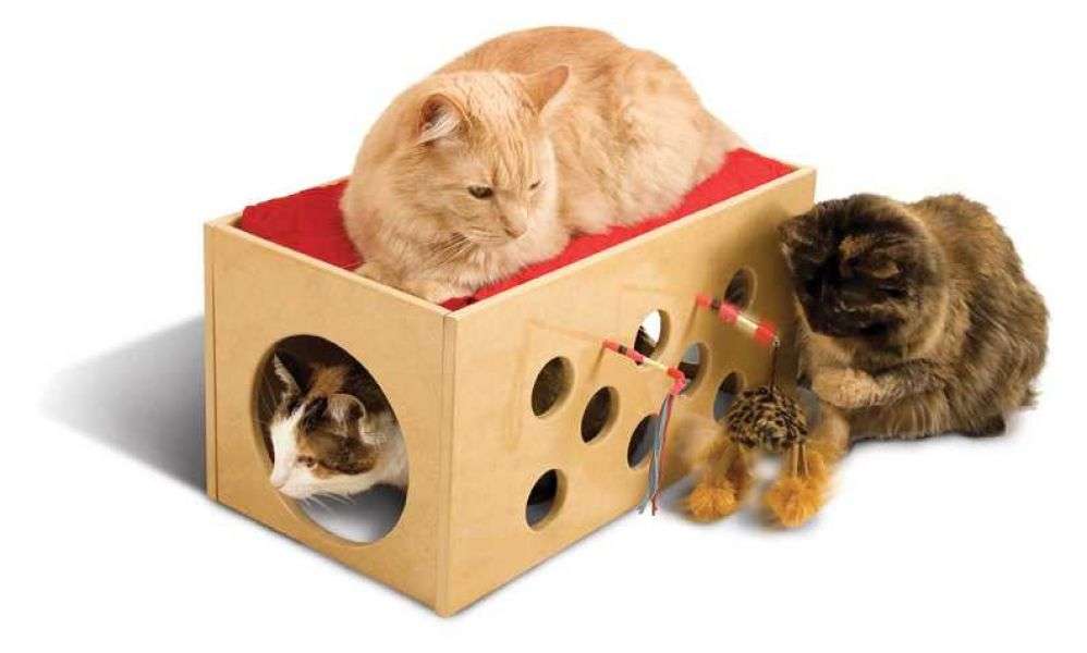 Spielen und Schlafen. Nach dem Spielen mit demStoffspielzeug kann es sich Ihre Katze im Tunnel oder auf dem Kissen des Daches