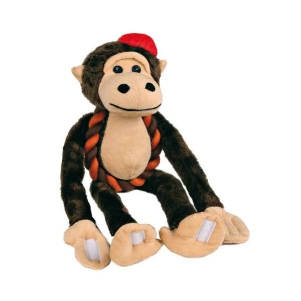 Dieser lustige Plüsch-Affe des Herstellers Trixie wird Ihrem Hund viel Freude beim Kuscheln und Spielen bereiten. Mit Klett an Händen und Füßen und Baumwollseil für die spielerische Zahnpflege.