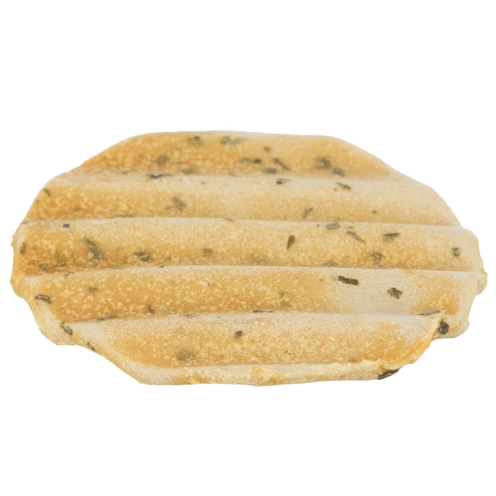 Zusammensetzung: Erbsenstärke, Hühnerfleisch (23 %), Maisstärke, Glycerin, Kartoffelstärke, Weizenmehl, Calciumcarbonat, Petersilie, Rosmarin | 0 % Zuckerzusatz | Kühl und trocken lagern.