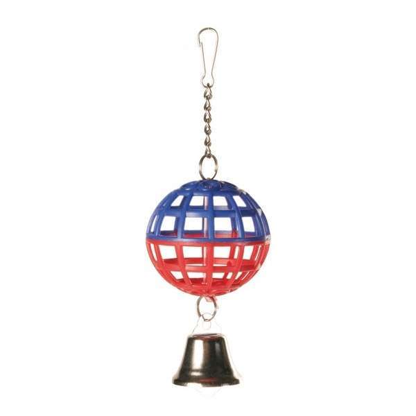 Gitterball mit Kette und Glocke zum Einhängen in Vogelkäfige.