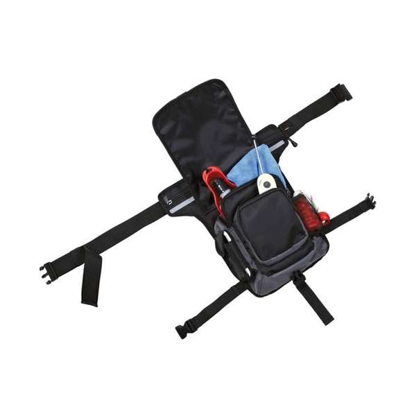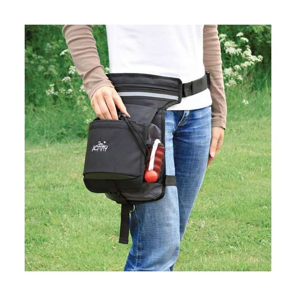 Sie beinhaltet drei Reißverschlusstaschen, eine formstabile Leckerli-Tasche, die mit einem Zugband verschließbar ist und seitlich eine Handytasche und eine Netztasche. So haben Sie in jedem Fall ausreichend Platz für Leckerlis, Spielzeug, Schlüssel, Handy und allem, was man auf langen Spaziergängen noch so gebrauchen könnte.