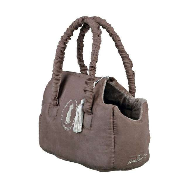 So ist auch diese Tragetasche speziell für die ganz kleinen Hundekönige ein echter Hingucker. Die edle Tasche ist außen in Veloursleder-Optik gehalten und innen mit einem kuscheligen Softplüsch-Bezug bestückt. Durch eine Schaumstofffüllung ist sie formstabil. An der Front und an beiden Seiten befinden sich edle Hundekönig-Stickereien, am Reißverschluss befindet sich eine dekorative Quaste. Um ein Herausspringen des Hundes zu verhindern ist die Tasche mit einer integrierten Kurzleine ausgestattet. Der Reißverschluss an der Oberseite lässt sich bei Bedarf hinten komplett bis zum Boden der Tasche öffnen. Die Tasche lässt sich bei 30° per Handwäsche reingen.
