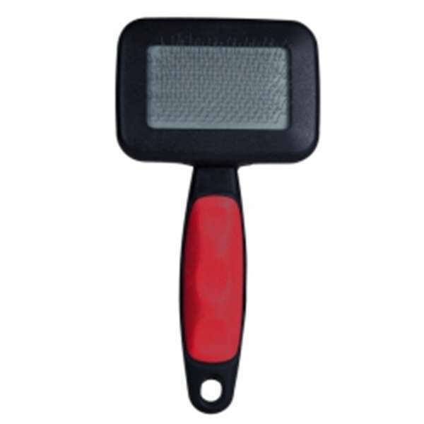 Diese Softbürste für Katzen, kleine Hunde und andere Kleintiere ist aus Kunststoff gefertigt und mit extra weichen Metallborsten ausgestattet. Die Softbürste verhindert ein Verkletten und Verfilzen des Fells.