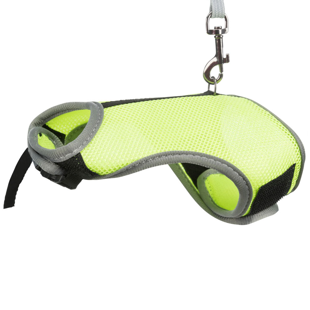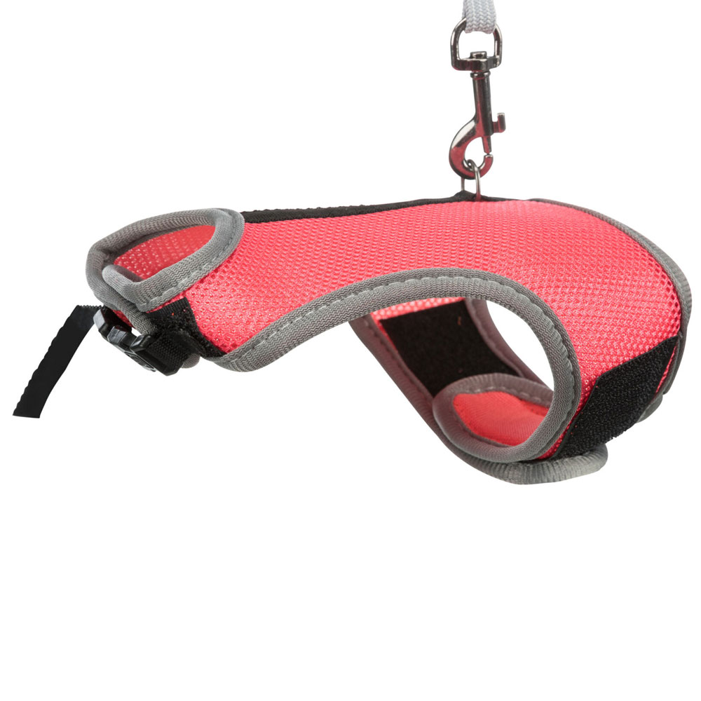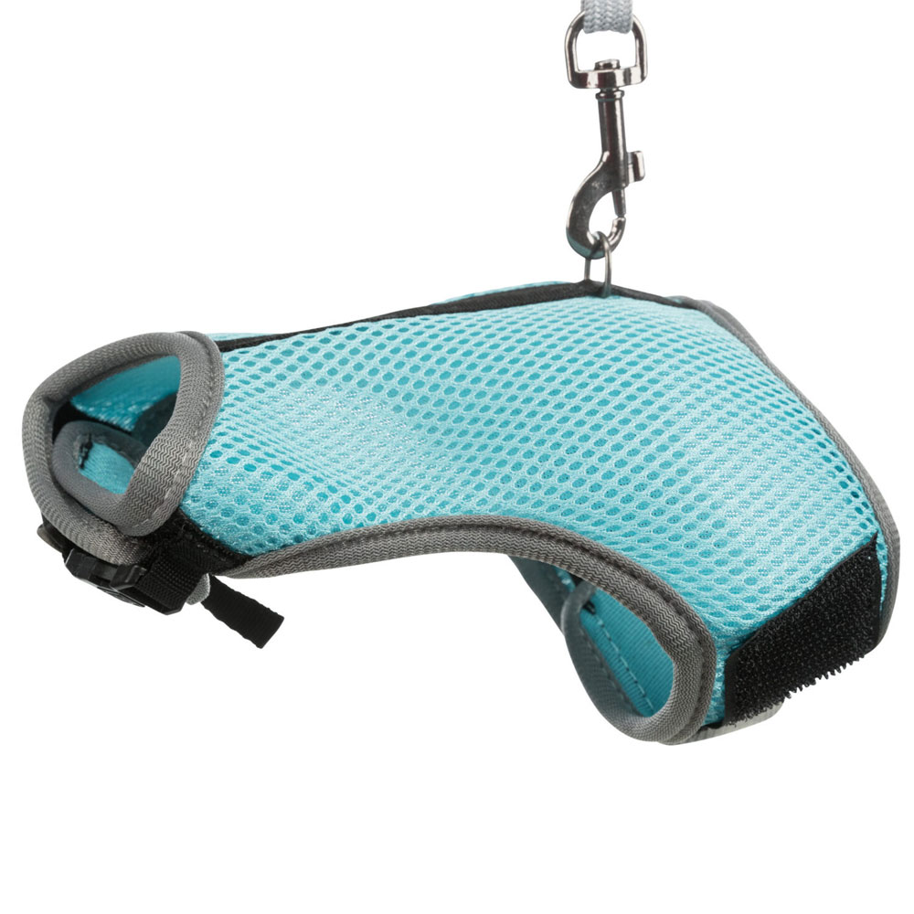 Das Softgeschirr für Kaninchen besteht aus strapazierfähigem Mesh-Material und Nylon und ist mit einer vollelastischen Leine ausgestattet. Durch die weiche Polsterung bietet es einen angenehmen Tragekomfort, während ein extra Nylongurt mit Schnappverschluss einen sicheren Sitz gewährleistet.