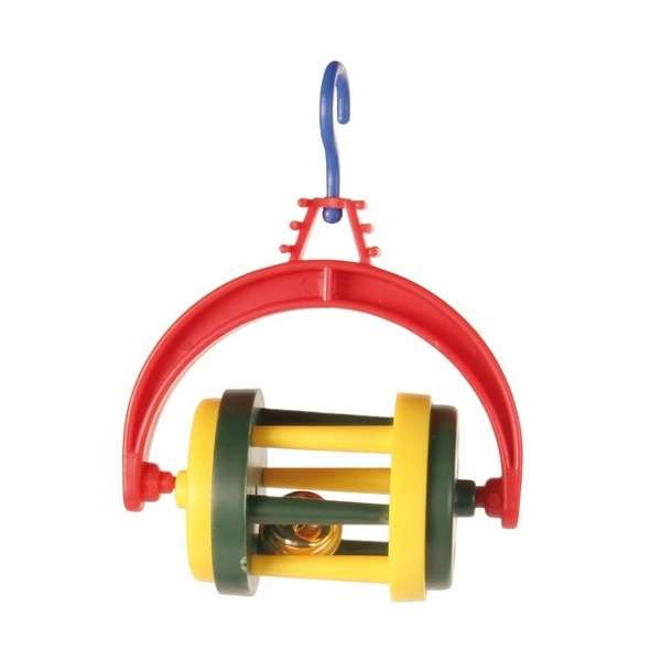 Spielrolle aus Kunststoff für Vögel zum Einhängen ins Käfiggitter. Mit Schelle.