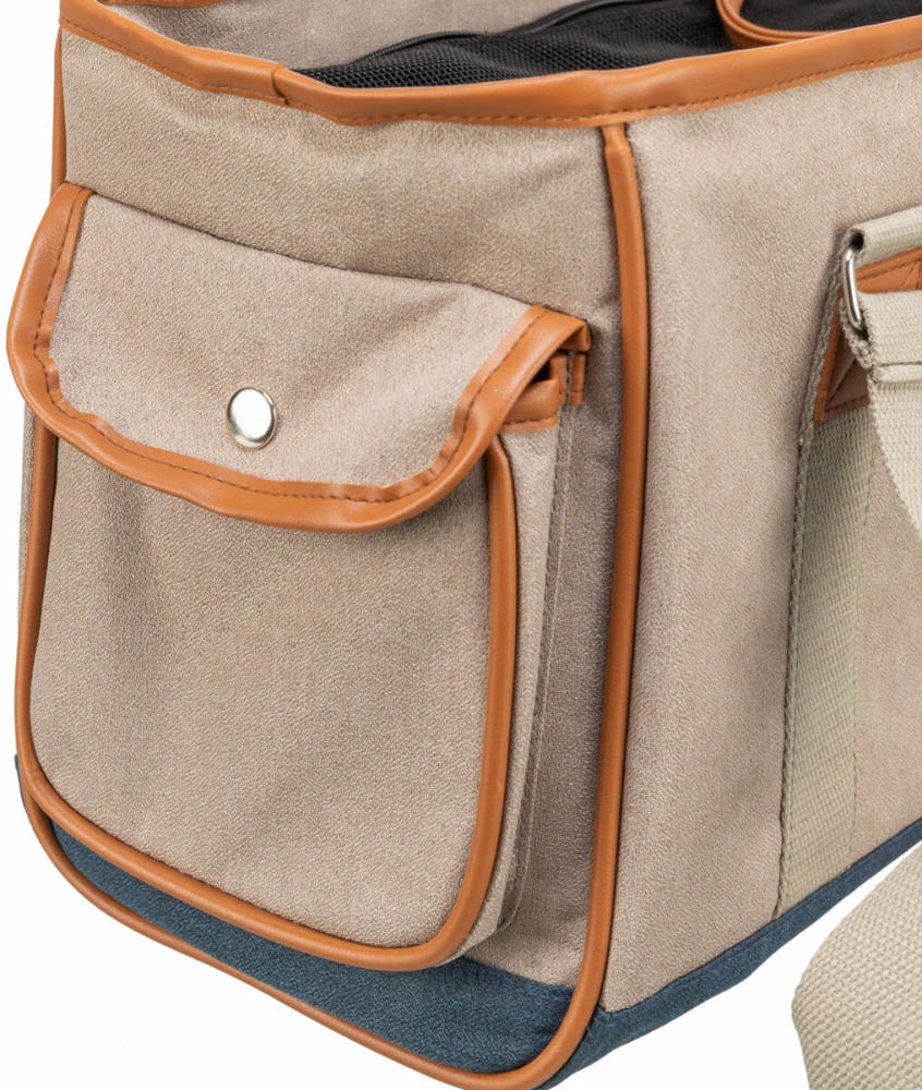 - Canvas-Optik mit Kunstleder (Polyester) abgesetzt